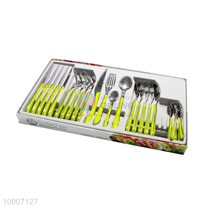 02007 Double Color No.2 Clamp Handle Knife, Spoon and Fork Set of 24 Pcs