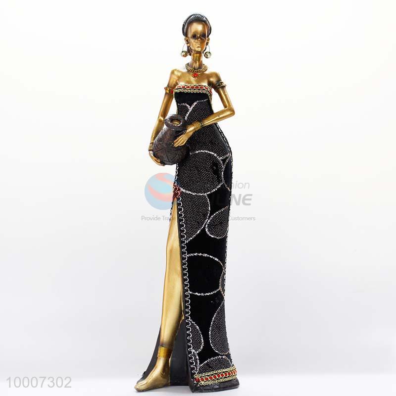 12*42cm Beautiful Afrian Standing Woman Dressed In Colors Resin Ornament