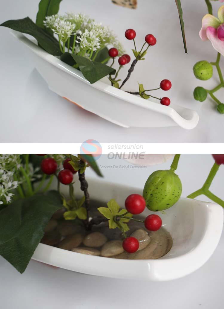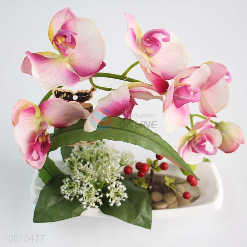 Beautiful Pink Artificial Flower Bonsai of Orchid & Cherry