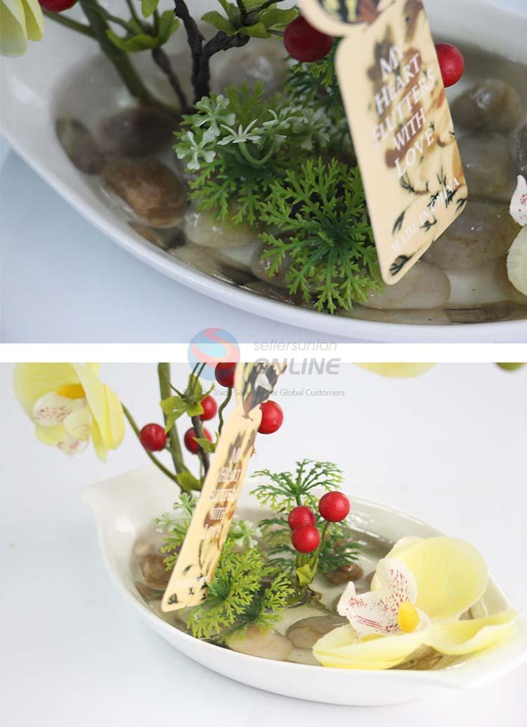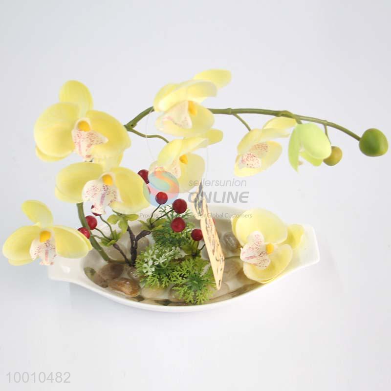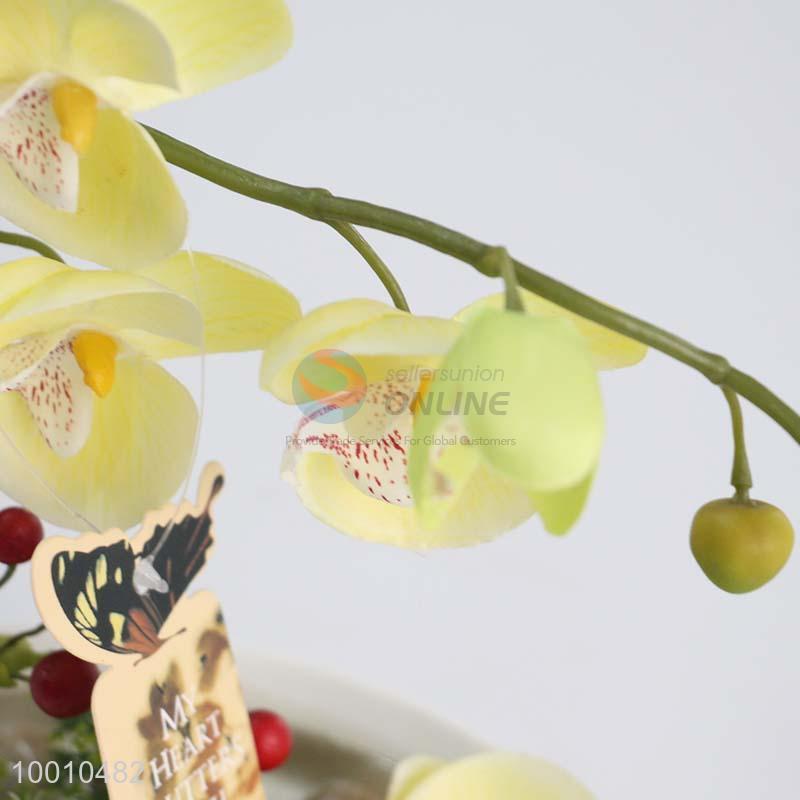 Light Yellow Butterfly Orchid Artificial Flower Bonsai for Desk Indoor Decoration