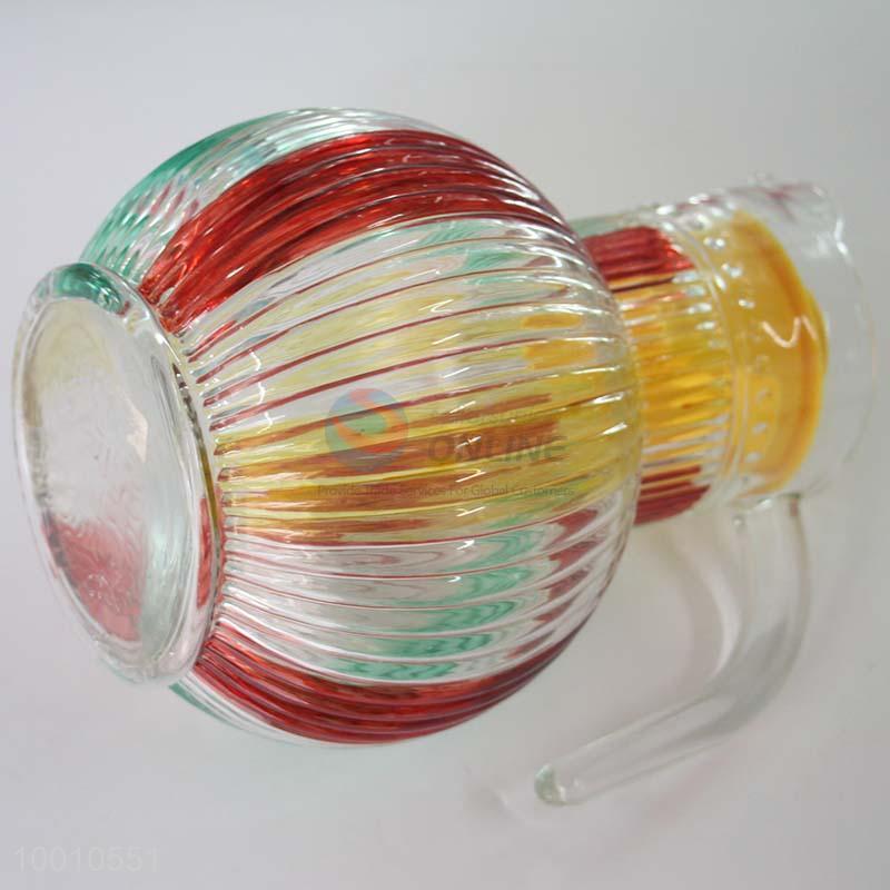 Vintage Rainbow Stripe Round Beer Pot Jug Glass Container