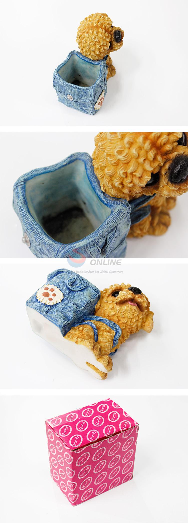 Cute Teddy Resin Dog Model Pen Holder with Backpack