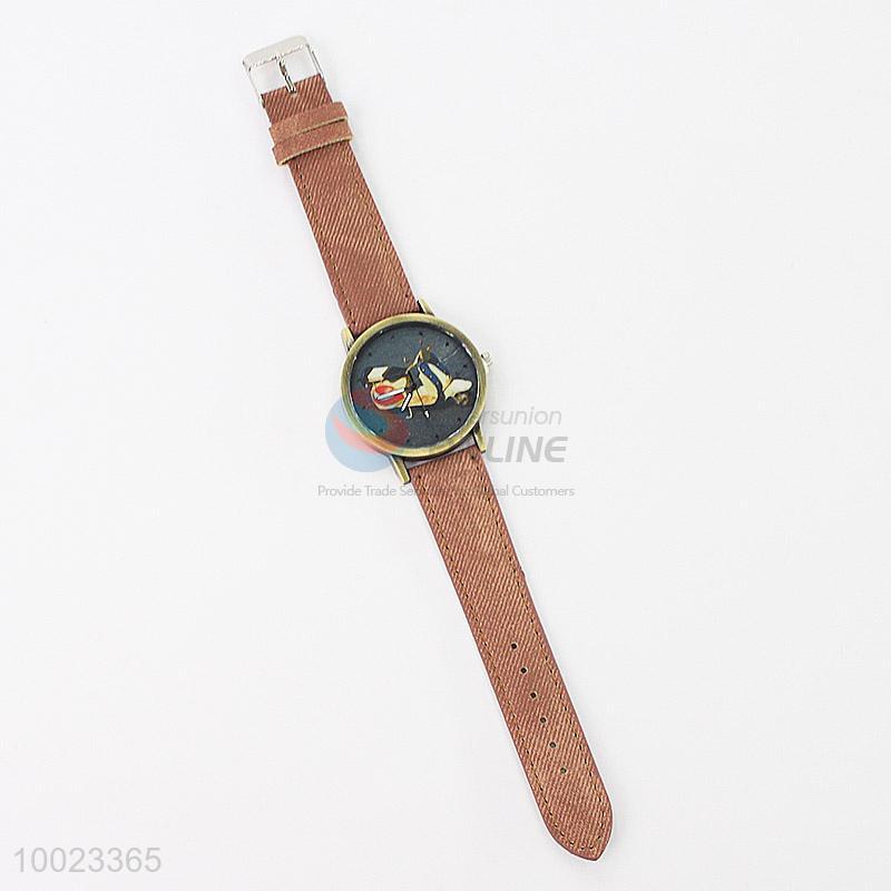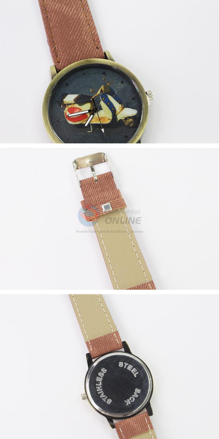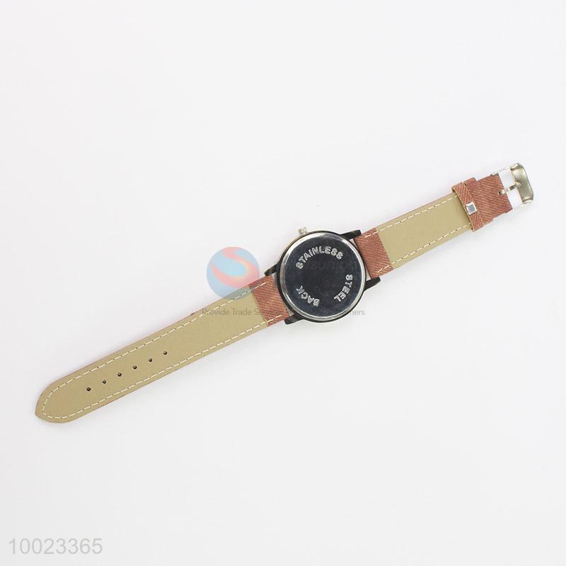 Brown PU Colorized Wrist Watch with Electromobile Pattern and Stainless Steel Back