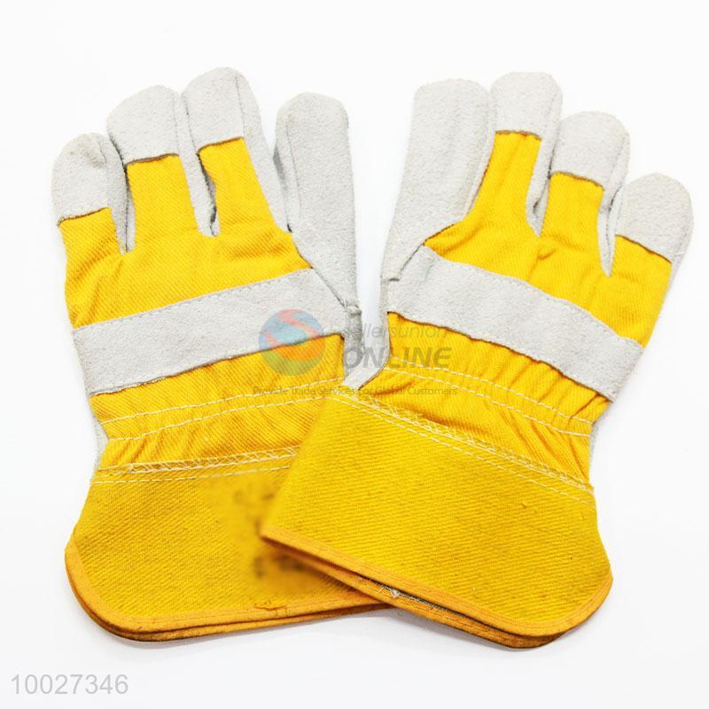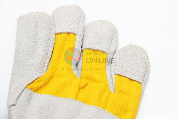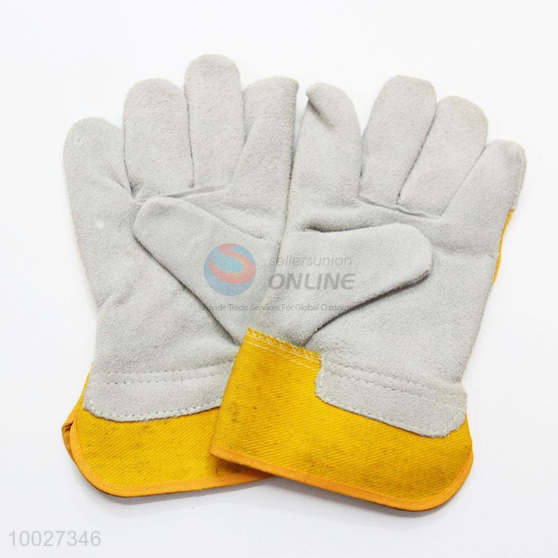 High Quality Leather Gray and Yellow Protection Gloves