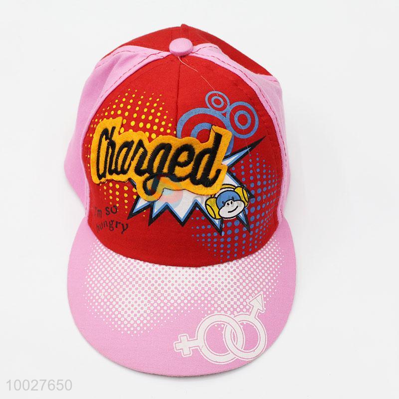 Factory wholesale kids pink polyester flat peak cap