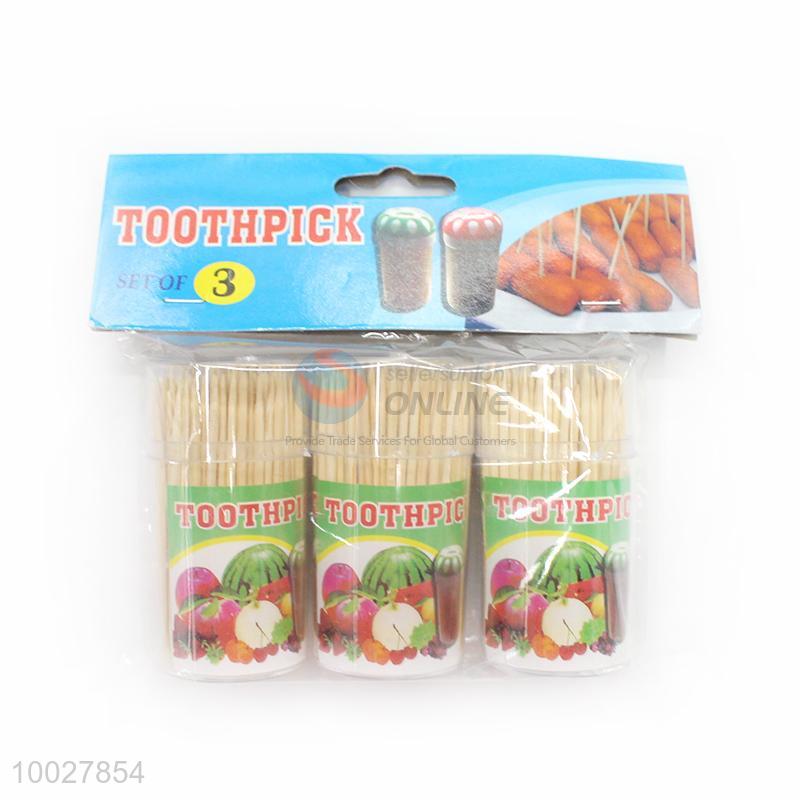3 Pieces transparent plastic package bamboo toothpick