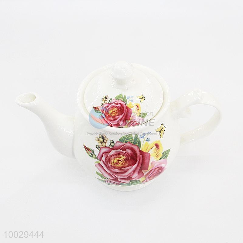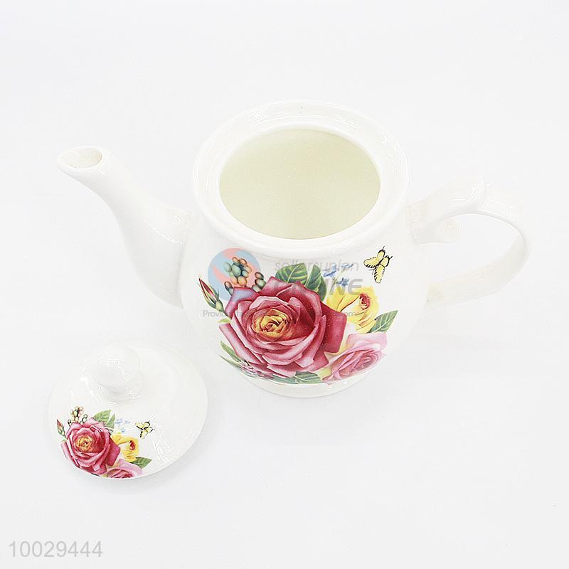 Flower Decorated Ceramic Teapot