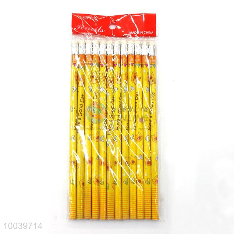 12pcs/set yellow cartoon wooden pencil pen