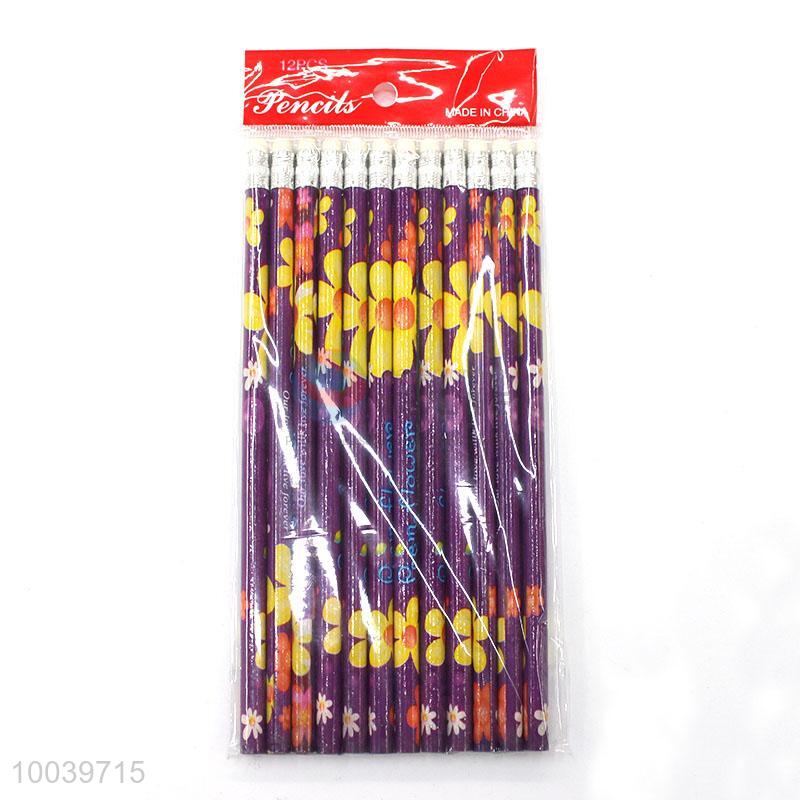 12pcs/set purple printing pattern wooden pencil pen