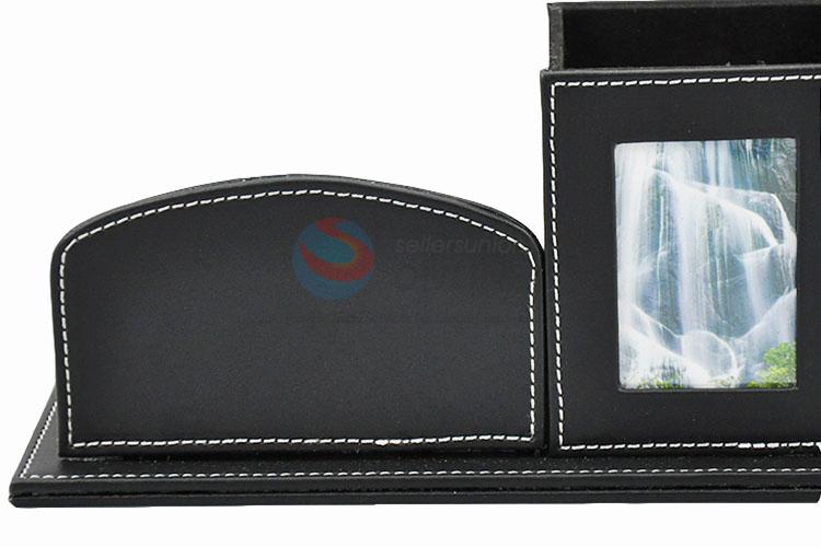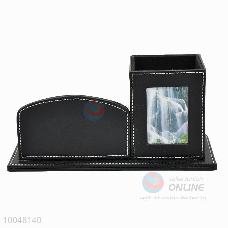 Unique business office black faux leather storage pen container