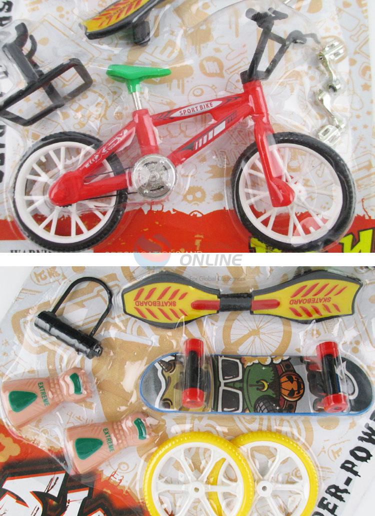 Toy suit about finger bicycle and Skateboard and Swing car along with their parts