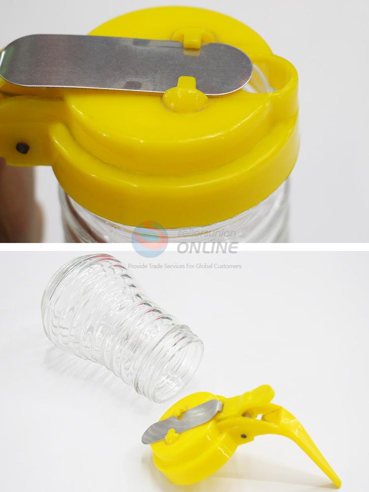 Hot Sale 11*7CM Glass Condiment Bottle with Yellow Lid&Handle
