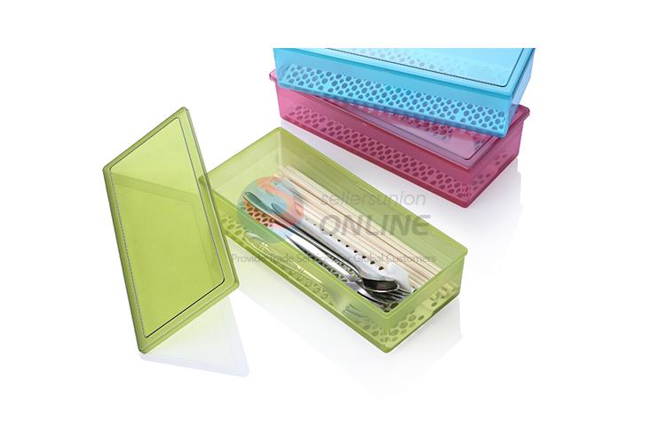 Durable plastic rectangle tableware storage box 3 colors
