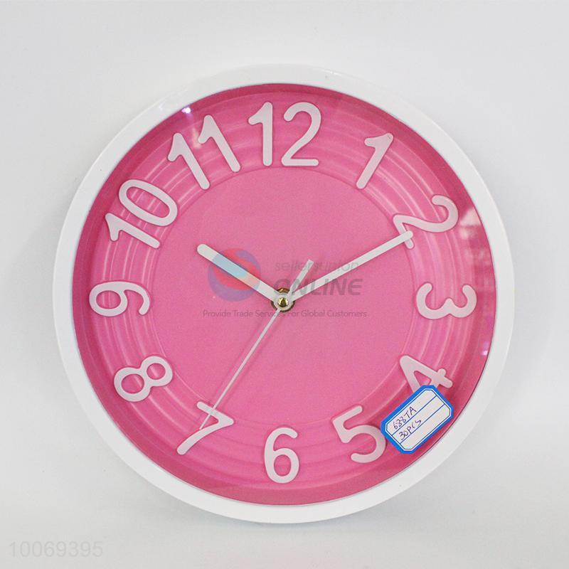 Pink round plastic plastic wall clock