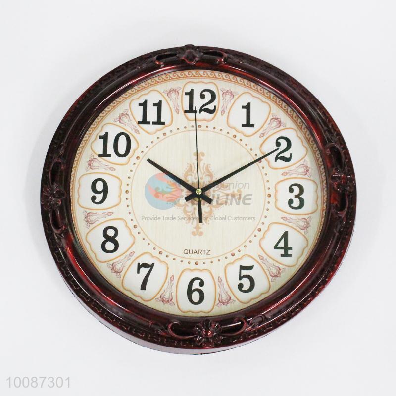 Brown edge round plastic wall clock