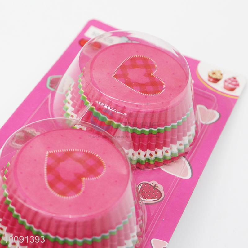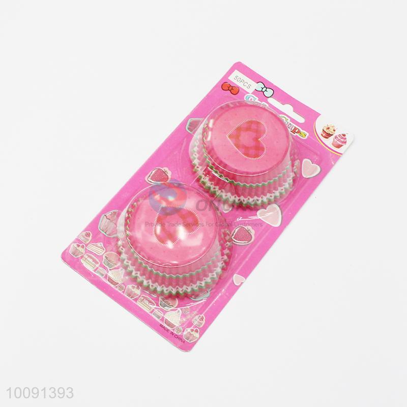 50Pcs Hreat Pattern Pink Paper Plain Solid Color Paper Cake Cup Liner Baking Cup