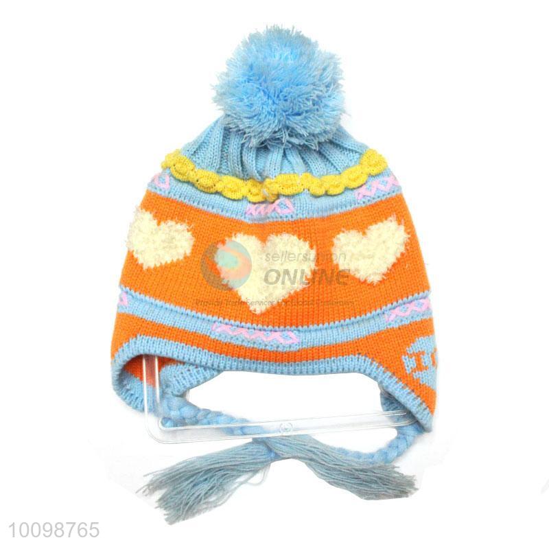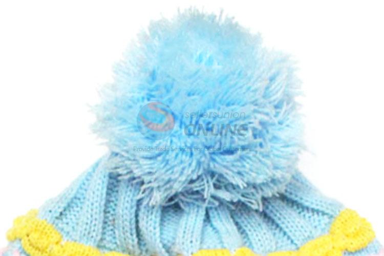 Winter warm knitted hat with top ball for children