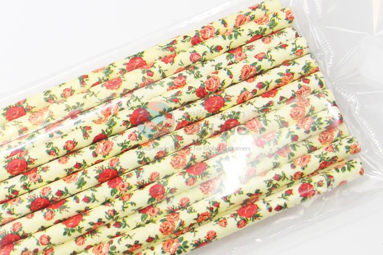 Red Flower Printed Paper Straw for Party Use