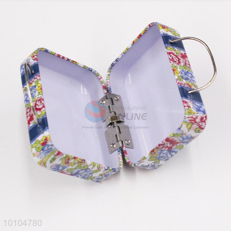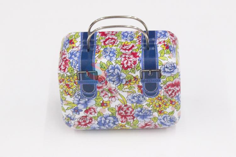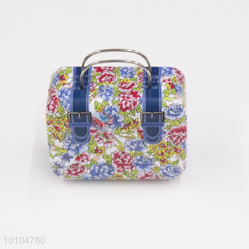 Flower pattern kids playing tin box with handle/suitcase