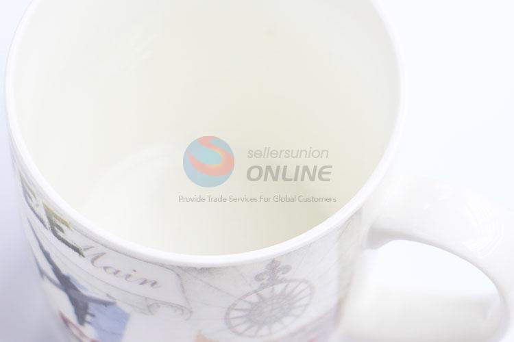 Fashion printed travel ceramic mug with handle