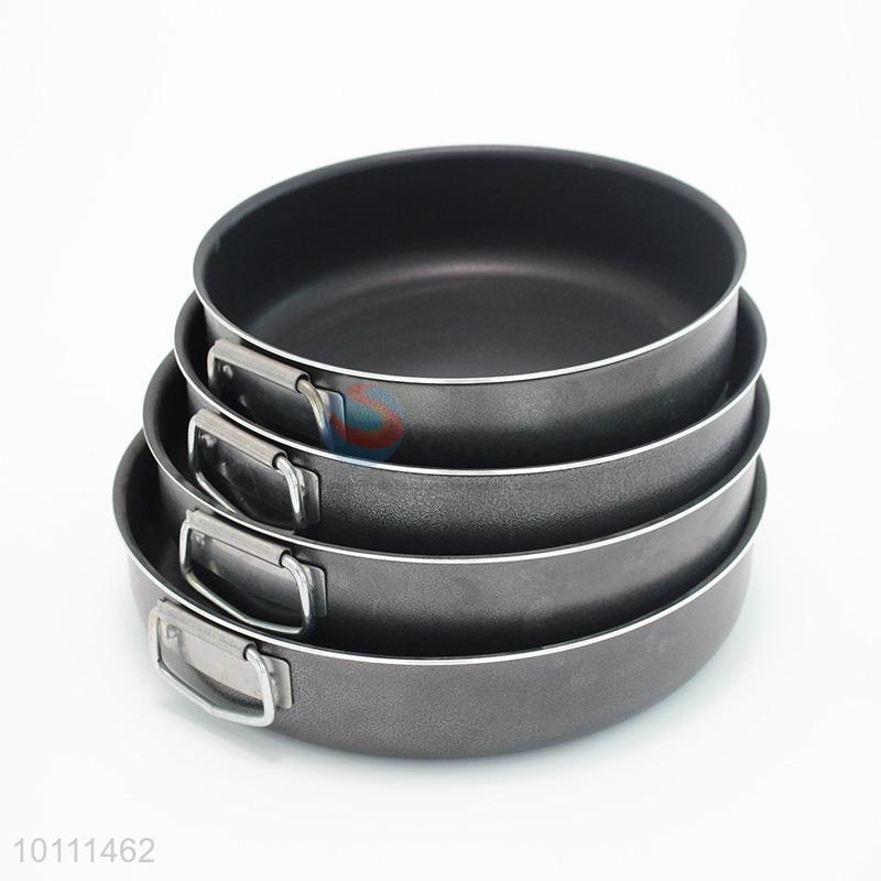 4 Pcs/Set Black Color Non-stick Round Grill Pan Ovenware with Two Handles