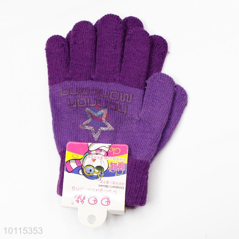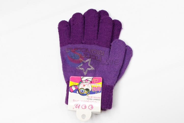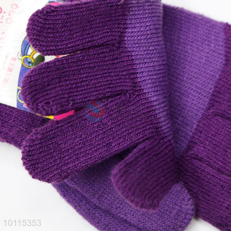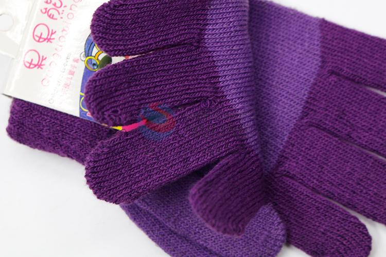 Comfortable purple knitted children gloves