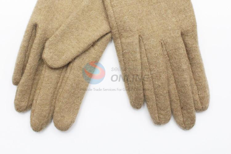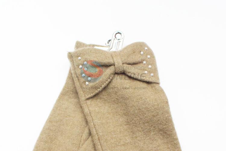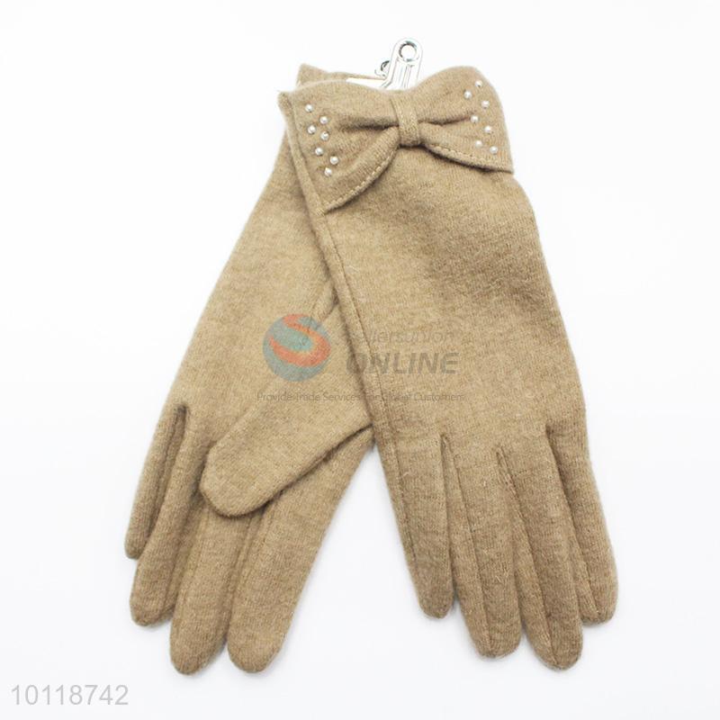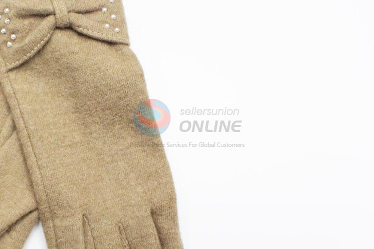 Khaki Winter Wool Gloves with Bowknot