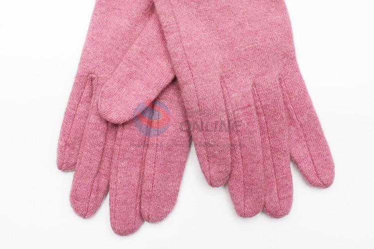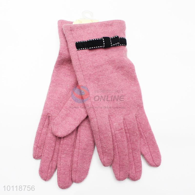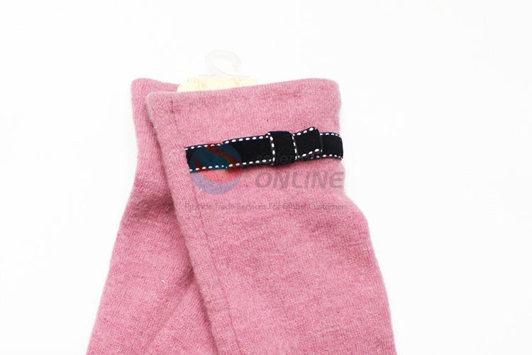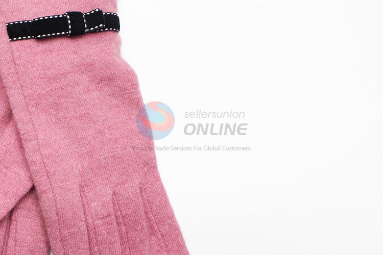 Pink Wool Gloves with Black Bowknot