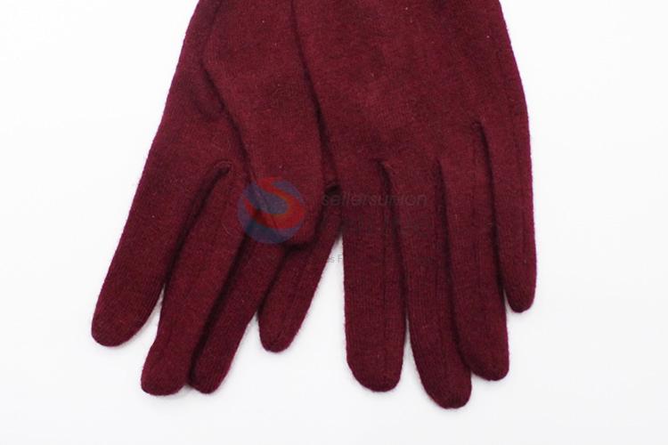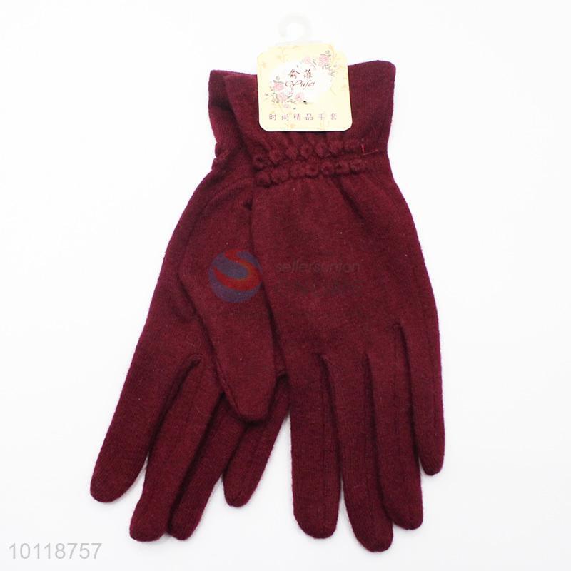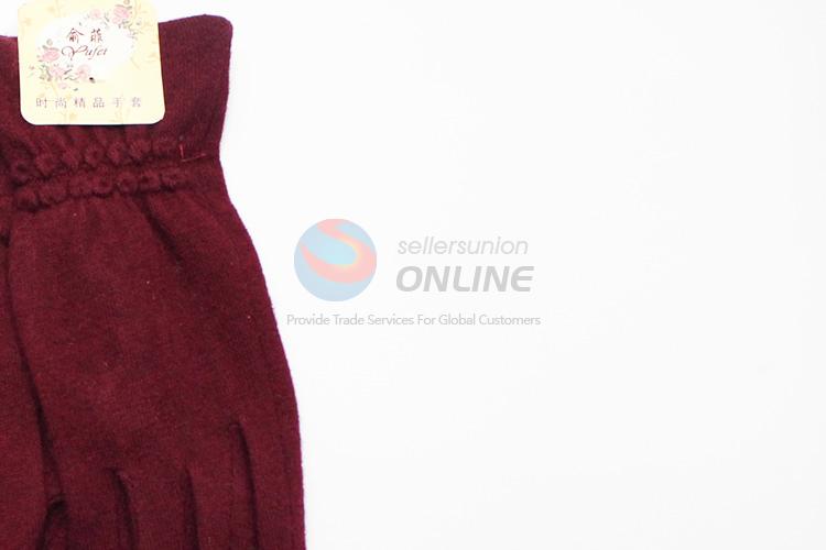 Wine Red Wool Gloves with Simple Decoration