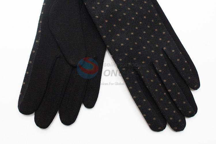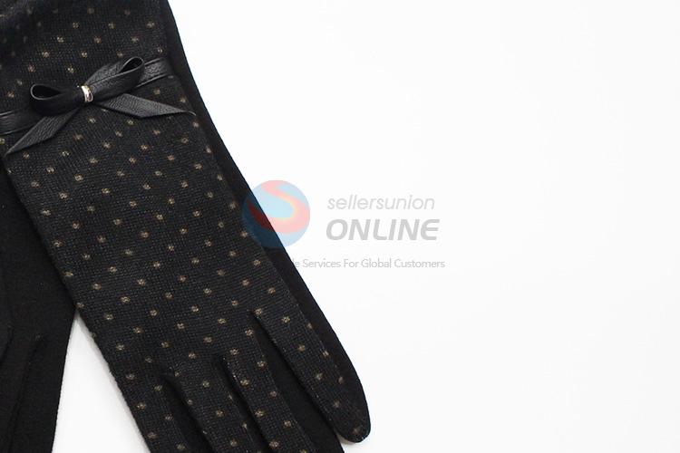 Black Dots Mirco Velvet Gloves with Simple Bowknot