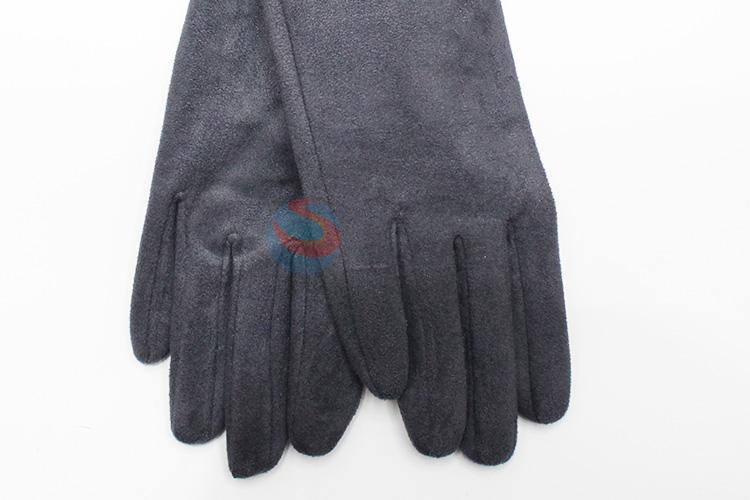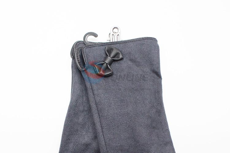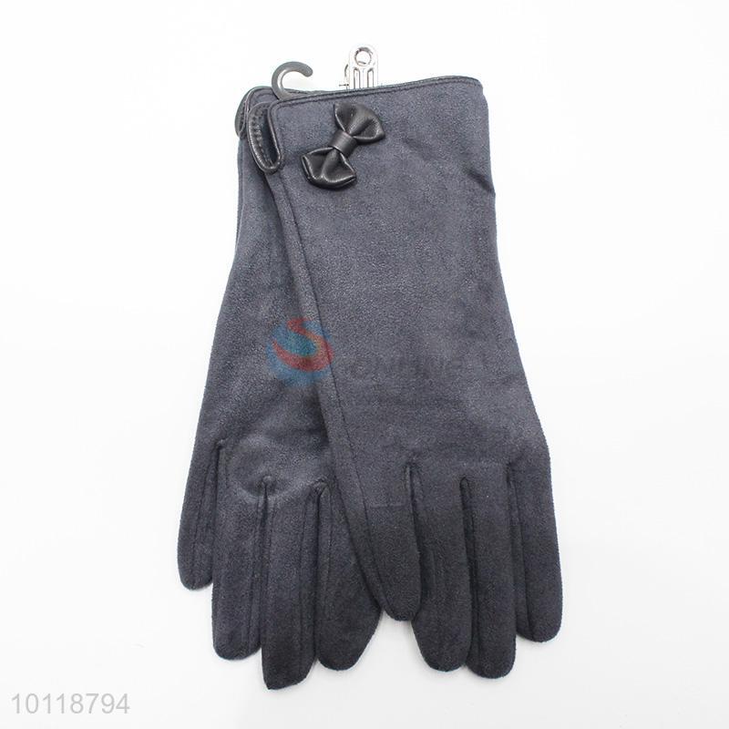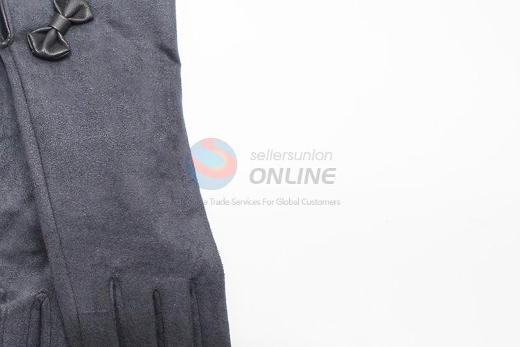 Fashion Women Dark Gray Suede Gloves with Bowknot