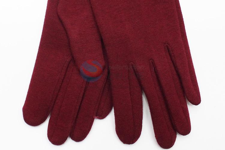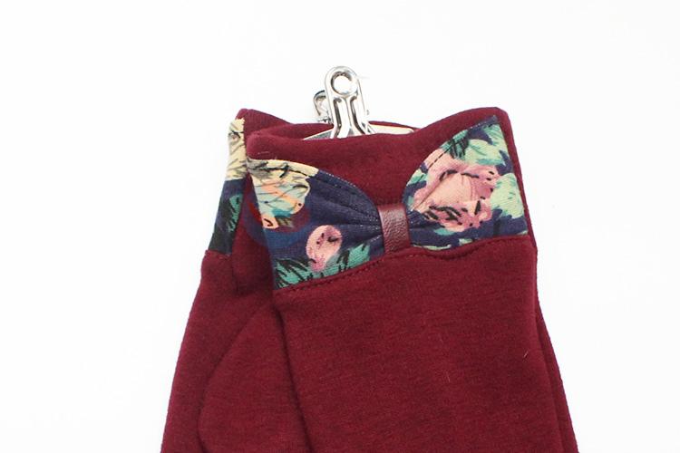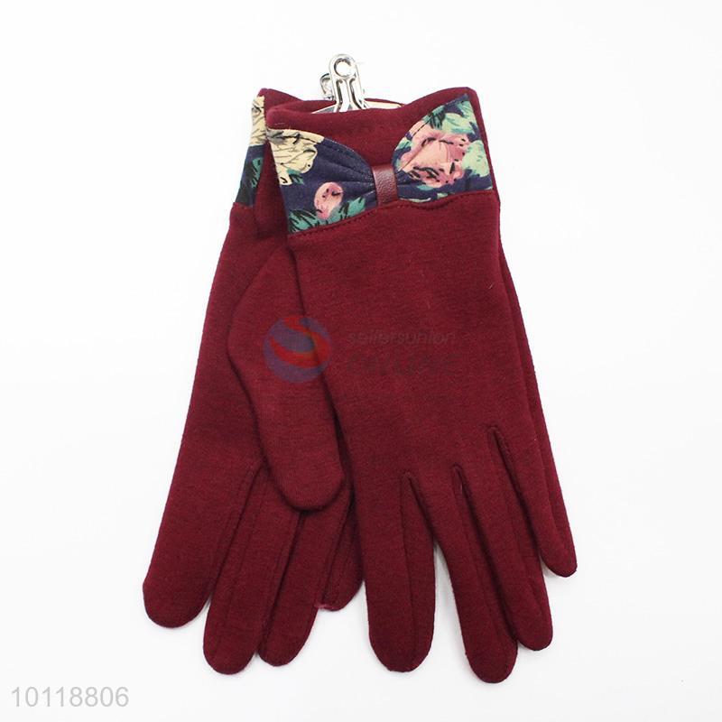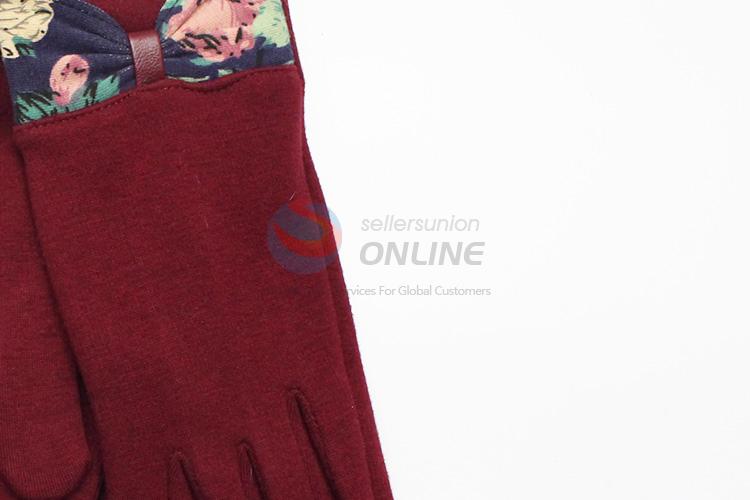 Women Red Mirco Velvet Gloves with Flower Bowknot
