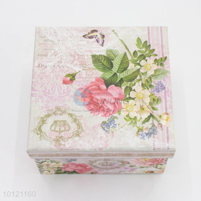 New Arrival Square Flowers Printed Gift Box with Lid
