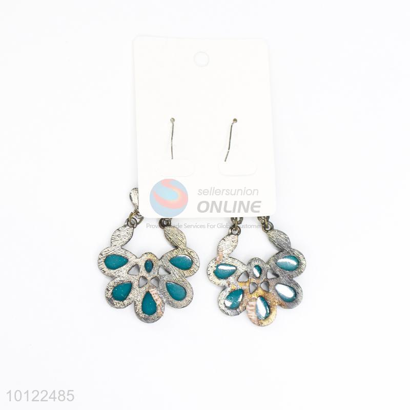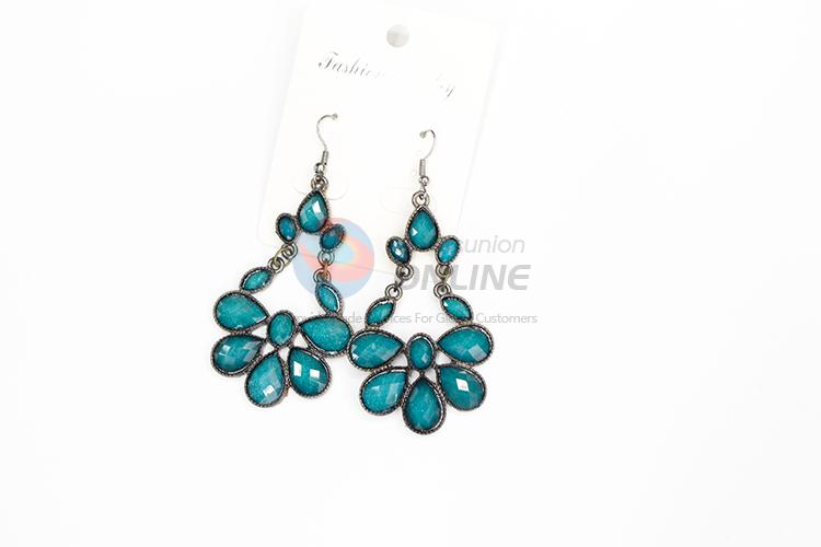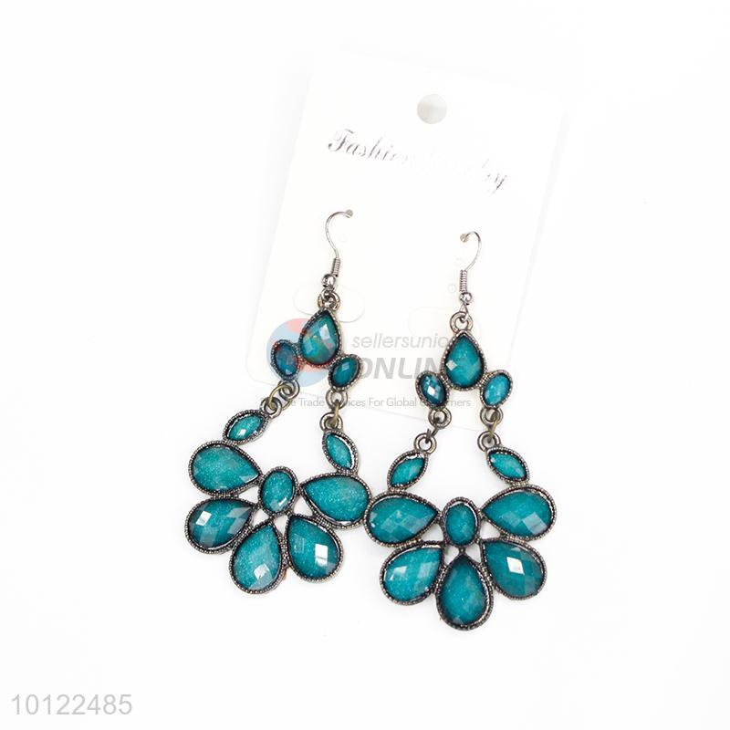 Flower shaped blue stone dangle earrings/wedding earrings/jewelry