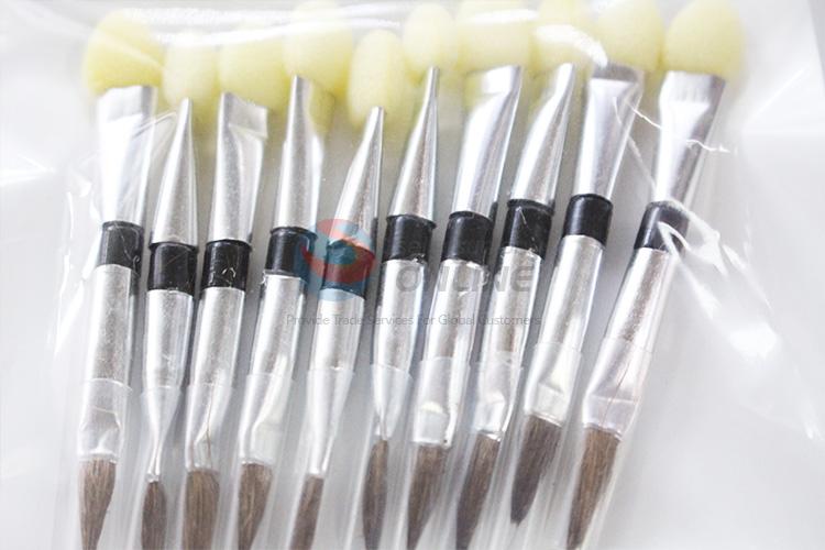 10 pcs Silvery Handle Makeup Brush for Cosmetic Double Ended Eyeshadow Brush Set