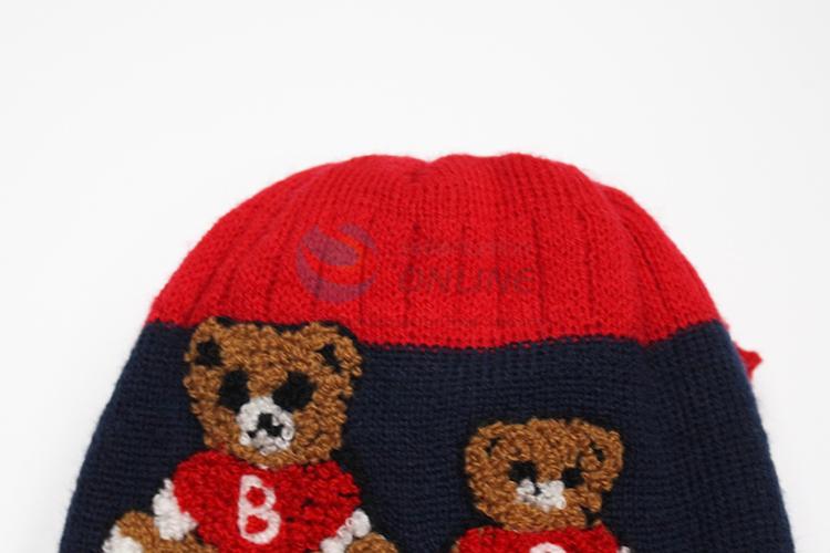 Top quality bear cotton kids winter warm hats