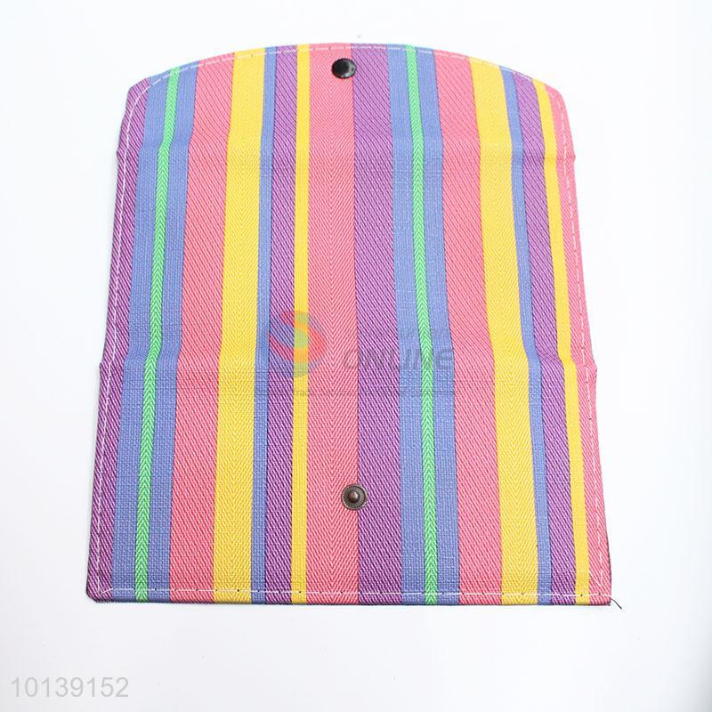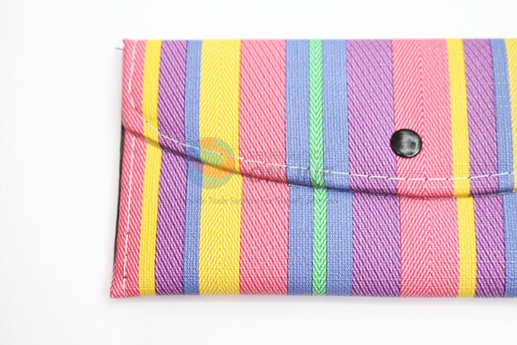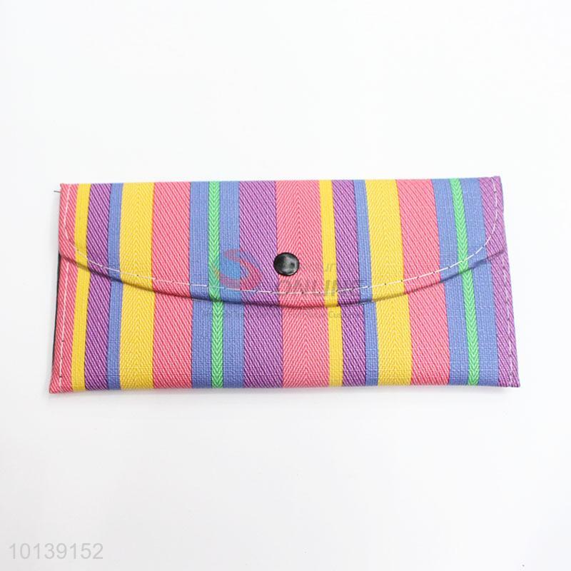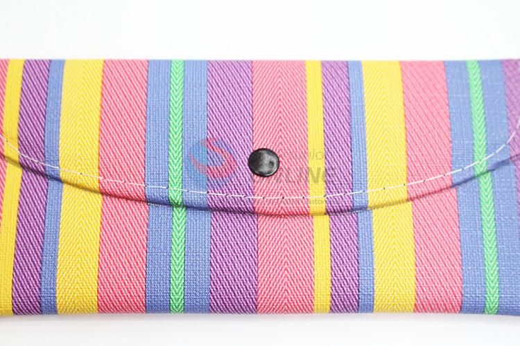 Multicolor Stripe Pattern Women Leather Wallet Girl Long Purse