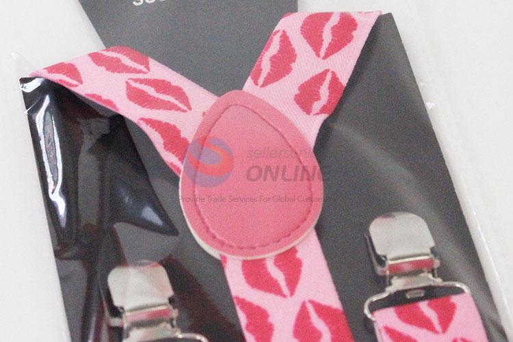 Promotional Pink Clip-on Adjustable Suspenders with Lips Pattern