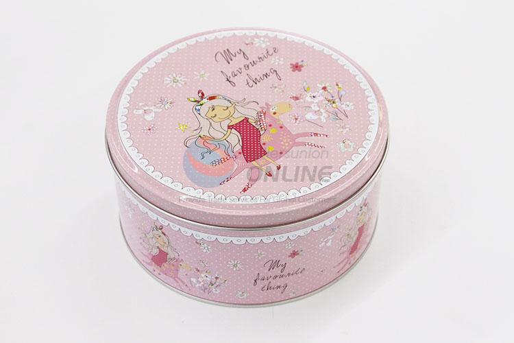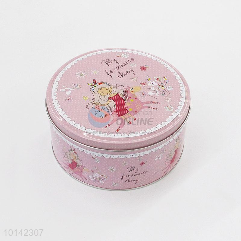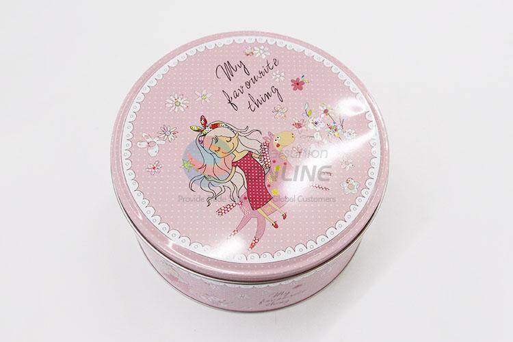 Unique Pink Color Little Girl Pattern Tin Box Cookie Box