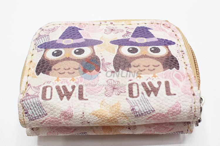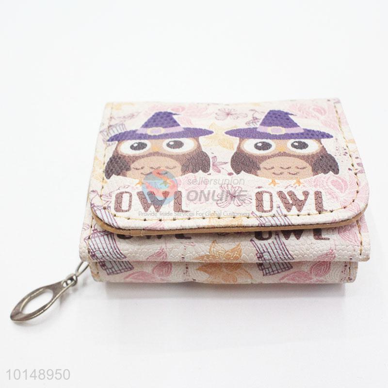 Cartoon Cute Owl Pattern Mini Wallet Three Fold PU Leather Purse Clutch Bag