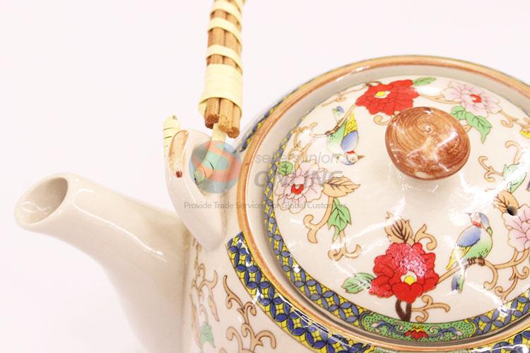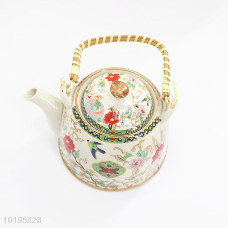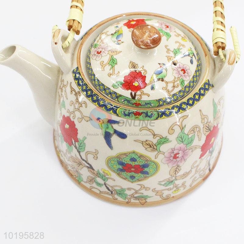 Retro Style Flower Printed Ceramic Teapot