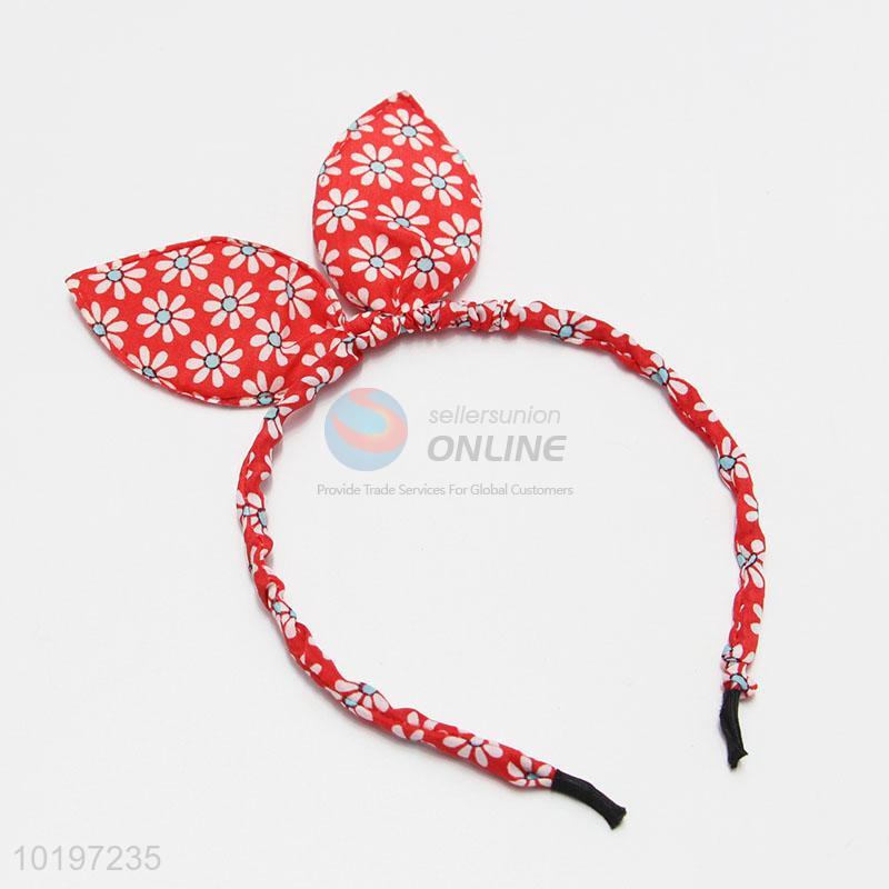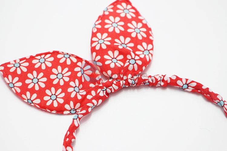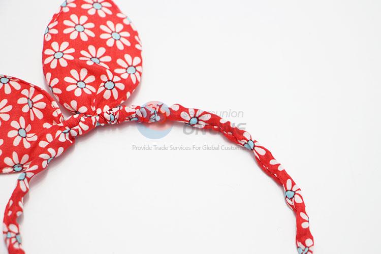 Wholesale Red Color Flower Pattern Rabbit Ear Hair Band for Girl