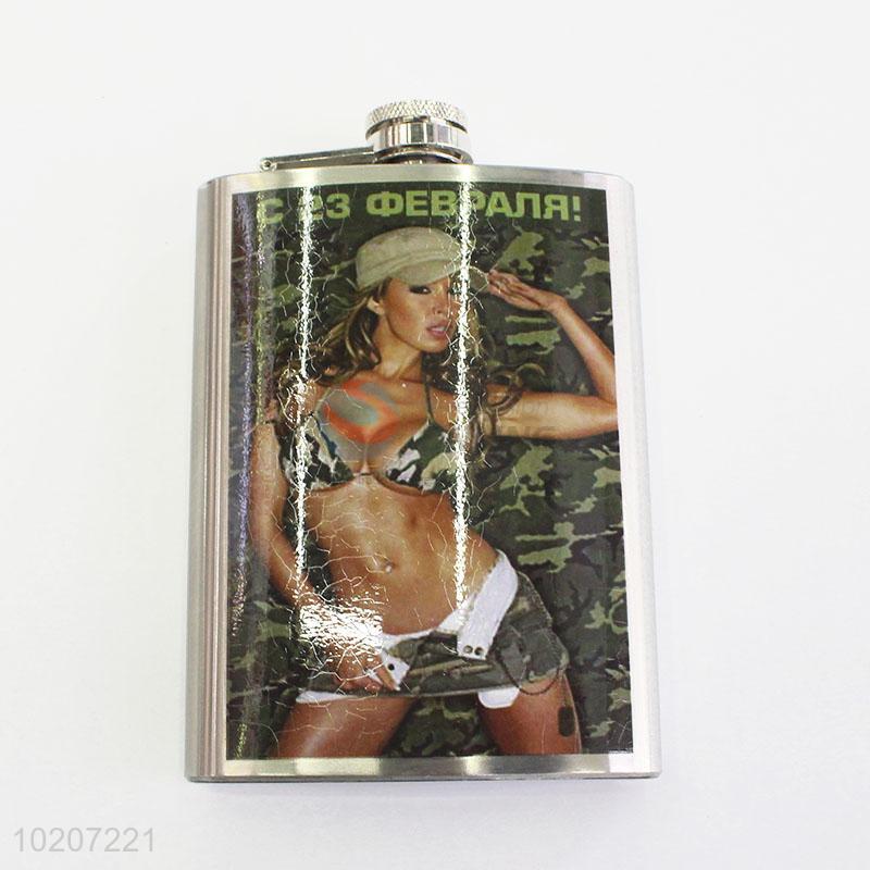 Sexy Lady Printed Hip Flask Stainless Steel Plastic Outdoor Camping Flagon