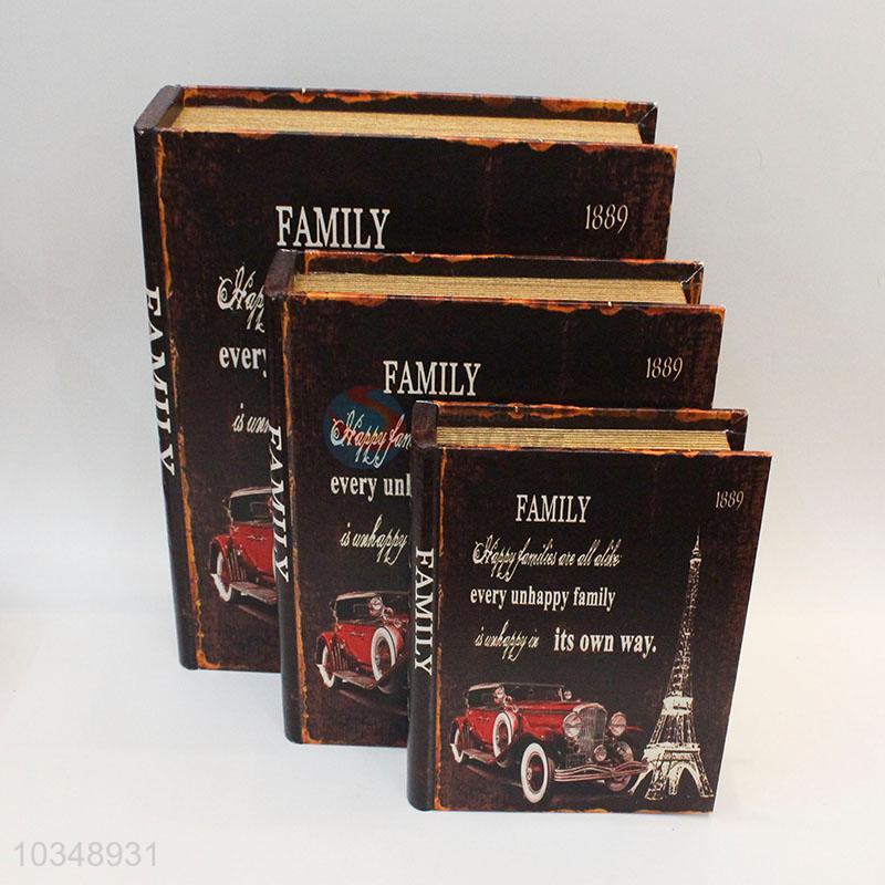 Comfortable wood vintage book storage box_3 pcs