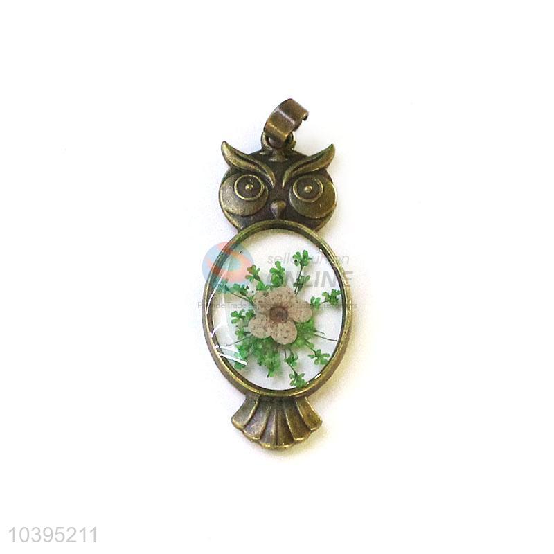 Newest Bronze Owl Shape Pendant Real Flower Pendant
