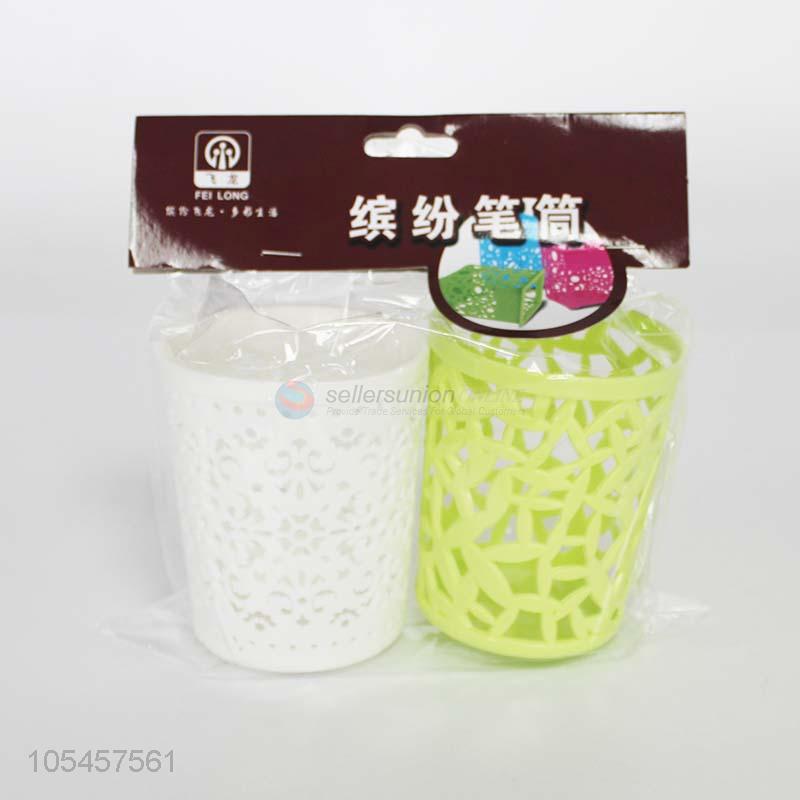 Hot selling round hollow-out plastic pen container stationery set