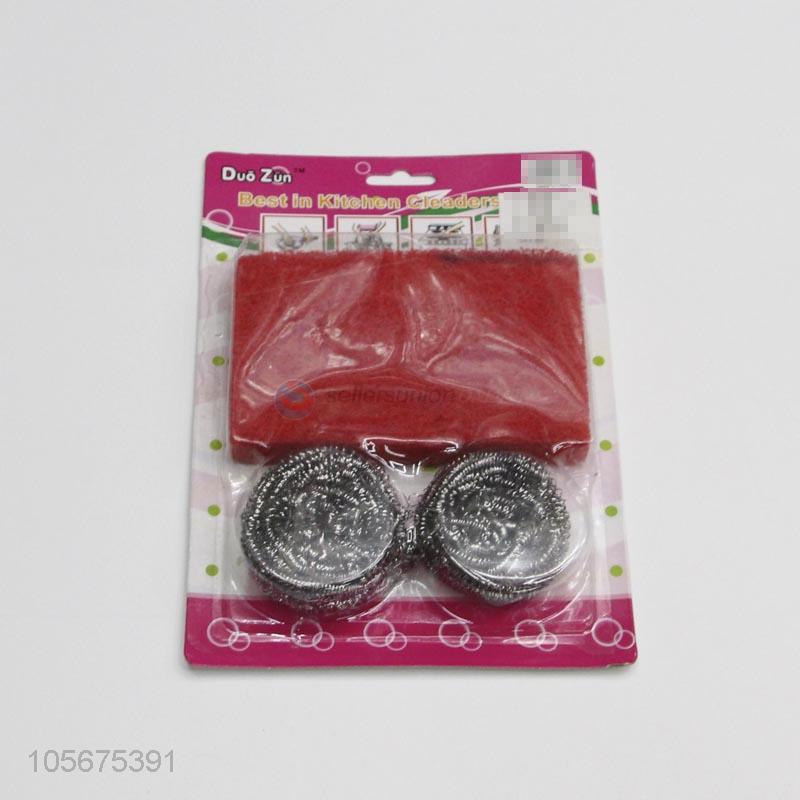 Factory sales stainless steel wire clean ball and scrubbing sponges set