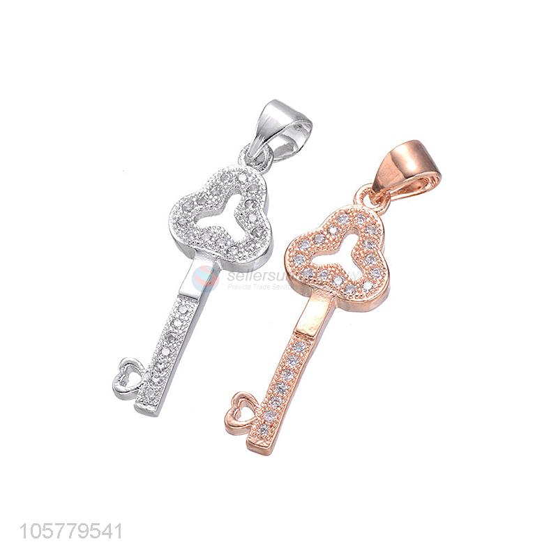 Latest Key Shape Inlay Zircon Necklace Pendant Copper Accessories