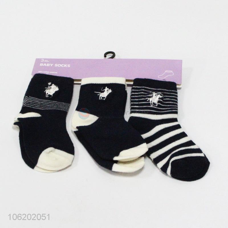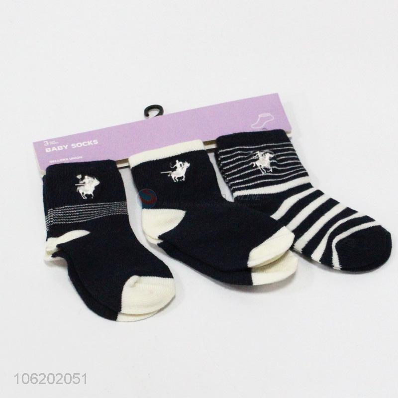 Factory price 3pairs soft polyester baby socks infant socks