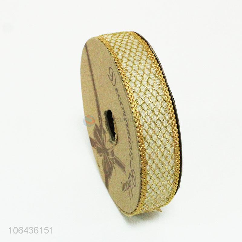 Low price wholesale golden polyester gift ribbon for package